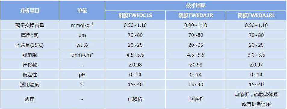 備注:上述數(shù)據(jù)均為參考值,而非離子膜的性能保證值,表格中的數(shù)據(jù)可能變更。